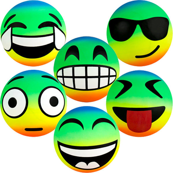 6" Inflatable Rainbow Emoji Vinyl Balls -Get ready to have a ball with our 6" Inflatable Rainbow Emoji Vinyl Balls! With colorful spray-painted rainbow design and big emoji expressions on each ball, these "Rainbojis" are perfect for adding some fun to your day. So get your Cool, Happy, Grinning, and Surprised faces ready and let the good times roll!