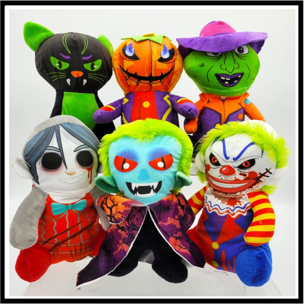 8.5″ Halloween Plush - Get ready for a frightfully fun Halloween with our 8.5" Halloween Plush! This spooky collection includes cats, clowns, witches, vampires and more! Made of high-quality materials, they will be the perfect addition to your festive decorations. Make your Halloween extra haunting with these plush toys!