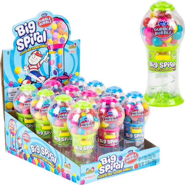 Dubble Bubble® Big Spiral Gumball Dispensers Meet the Dubble Bubble Big Spiral Gumball Dispenser - Kidsmania's fresh twist on a traditional treat. Just push a button and indulge in a variety of tangy gumballs. No more waiting - grab and go! (Colors may vary.)