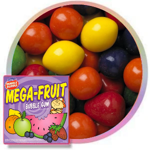 Dubble Bubble Mega Fruit 2-Inch Gumballs - These big 2 inch gumballs by Dubble Bubble are truly a sight to behold. In this mix you will find MASSIVE chunks of bubble gum in the shapes and colors of real fruits. The red gumballs are shaped like strawberries, the yellow gumballs are shaped like lemons, and so on. With their huge size and unique shape, these gumballs are sure to stand out in any vending machine!