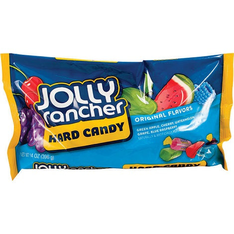 Jolly Ranchers Hard Candy - This hard candy is loved by young and old alike! This bag of approximately 66 pieces contains the classic assorted flavors: Green Apple, Blue Raspberry, Cherry, Grape, and Watermelon.
