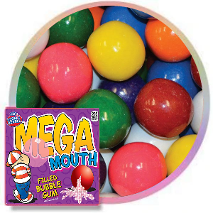 Mega Mouth 2-Inch Unfilled Gumballs - These big 2 inch gumballs by Dubble Bubble truly need to be seen to be believed. In this mix you will find MASSIVE chunks of bubble gum in assorted colors and flavors. Bite down on them and get rewardedwith a delicious candy filling.