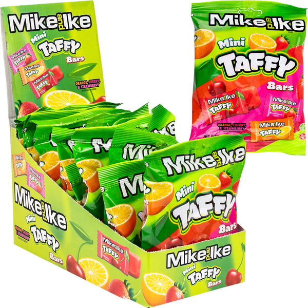 Mike and Ike® Taffy Peg Bag 12ct - Get ready for a flavor explosion with Mike and Ike® taffy! Enjoy the fruity goodness of strawberry, cherry, and orange citrus all in one chewy candy. Perfect for satisfying your sweet cravings. Comes in a convenient peg bag with 12 individual packs.