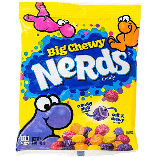Nerds™ Big Chewy Peg Bag -Indulge in a unique snacking experience with Nerds™ Big Chewy Peg Bag! Bursting with fruity flavors and textures, these chewy treats feature a soft center encased in a classic Nerd candy shell. With recognizable branding and all the popular flavors, this brightly colored peg bag will grab attention. So satisfyingly chewy (and fruity)!