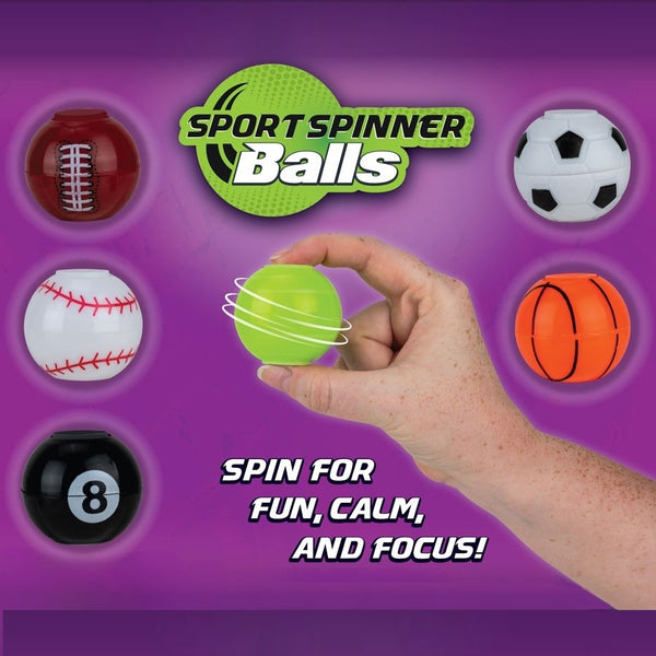 Sport 2-Inch Spinner Balls - Check out these self-serving sports balls for fidget spinners! This combination will please fans of baseball, pool, tennis, football, basketball, and pool. These spinning balls are excellent bin toys!