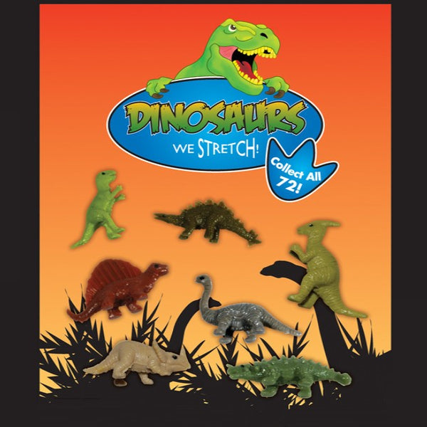 Stretchy Dinosaurs in 1-Inch Capsules - These seven different dinosaurs are timeless and are made of flexible cloth. Despite being small, each one has realistic elements that children like. There are 72 different color options available for them.