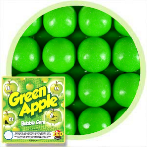 Zed Green Apple Flavored Gumballs - 1-inch / 900 Count - Zed gumballs are the new kid on the block. Designed specifically for vending, these fade resistant gumballs feature your favorite fruit flavors and don't have a logo imprinted on the surface. Packaged in 4 sealed stay fresh plastic bags to make it easier to refill or just top off your gumball machines. We include 50 bonus gumballs in each case that increases your revenue by $12.50 making these gumballs THE best value around.