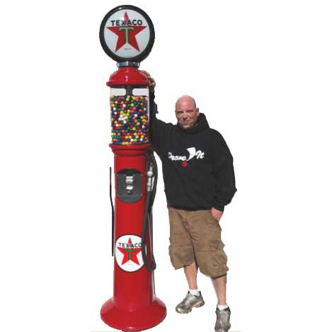 7'6" Replica Gas Pump Gumball Machine - Fill 'er up with the 7'6" gravity feed replica gas pump gumball machine. Before the invention of electric pumps, people had to do a little manual labor to get gasoline. They had to pump the clear cylinder full of gas and then gravity would fill the tank! In the 1920's and 30-s, these originals stood 10-12 feet high! We picked a popular style pump and scaled it down to 7'6". What an awesome impression this machine makes!